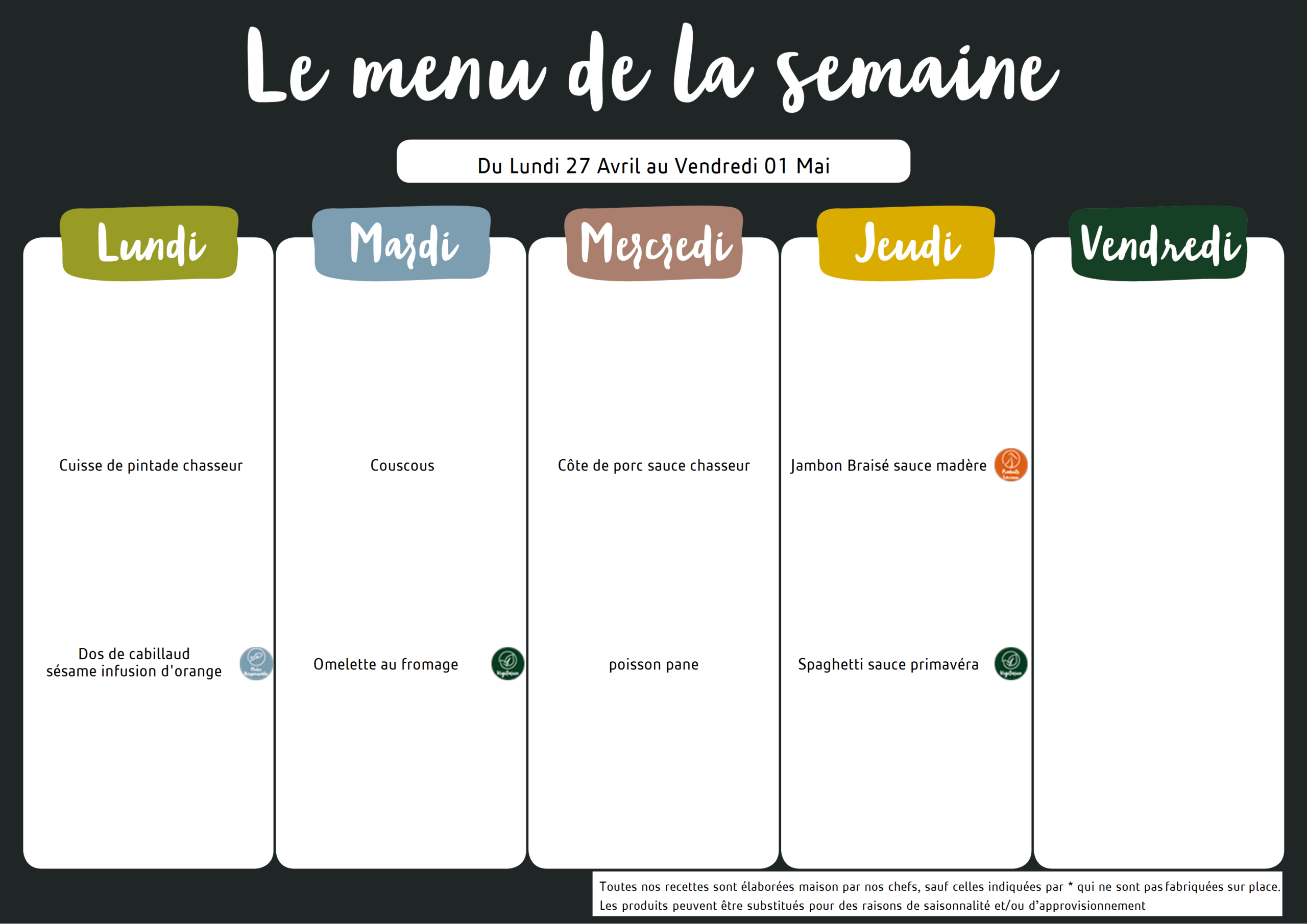 Les menus de votre Restaurant Amicalement Vôtre